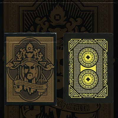 Das Angry God of Wealth Kartenspiel hat ein gelbes Rückendesign.