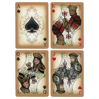 This deck is about storytelling - it's about Alice's continued adventures in Wonderland to be precise. Fairy tales make for a great entertaining medium. Imagine taking that same love and passion we all reminisce about and puting them into a deck of playing cards - the cards that come from a vision of Wonderland. Inspired by Lewis Carroll's (Charles Dodgson) original Alice's Adventures in Wonderland, This classic story is taken further, by continuing Alice's Adventures as a young lady who earns the title - "Alice of Wonderland". This deck of playing cards, as well as the main story, has a Steampunk Wonderland theme. The traditional de la Rue design style is kept by only illustrating the face cards and keeping the numbered cards basic, but with a hint of Wonderland.
