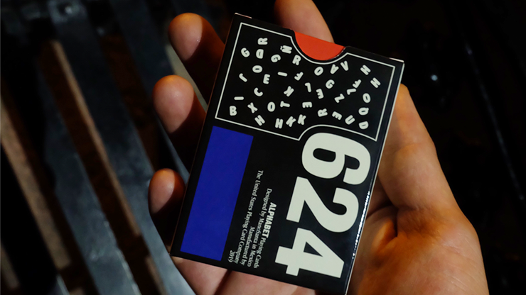 Our second release. This deck is comprised of fifty-six (ad cards included) different back designs that work together seamlessly. Blue background with white letters, black trim, and hand-made logos for each card in red detail. Printed in Crushed stock. All covered with a retro look.