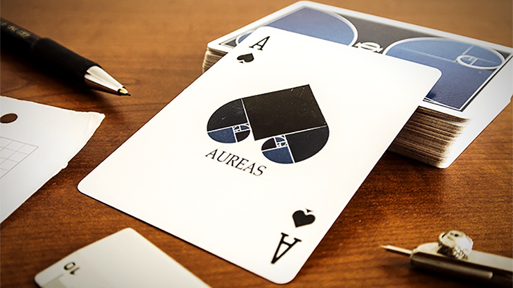 AUREAS Playing Cards is a fascinating deck inspired by the mathematical beauty of the Fibonacci Sequence and the Golden Ratio. Over a year in the making, AUREAS is produced by Italian magician Hyde and designed by Annalisa Storari and Kiran Kuruvithadam. Golden Ratio translates to "sectio aurea" in Latin. From that, the name "Aureas."