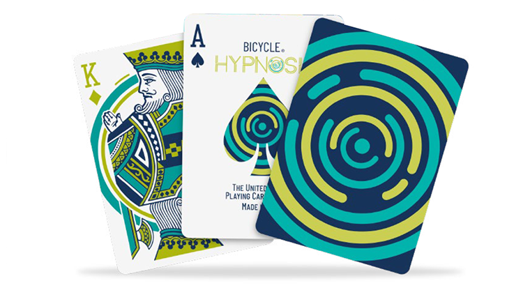 Be prepared to be mesmerized with the Bicycle® Hypnosis deck - perfect for everyday play and cardistry alike. With its borderless back design, Bicycle Hypnosis was specially created with the cardist in mind. The design will enhance the flow of all flourishes, fans, and spreads. The Hypnosis card faces feature over-sized Court cards with subtle design changes to complement the back design, while also functioning as a normal deck of playing cards.