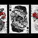 The first image to take shape, which eventually played a major role in the Black Dragon Series of playing cards, was the "Black Koi" (featured as the Joker in this deck series). It was created by Marine Loup back in 2014 after she felt inspired by a legend about a group of Koi fish. The legend goes that through determination and perseverance, a single black koi was able to swim upstream to reach the top of a waterfall against all odds. It overcame demons that laughed at and mocked its efforts and who had also heightened the waterfall out of malice. According to legend, after reaching the top of the waterfall, the gods who had witnessed the koi's efforts turned the black koi into a Golden Dragon, the image of power and strength. This deck draws its inspiration from this legend and from Marine Loup and her Turning Japanese illustrations, and represents the determination and perseverance demonstrated by the black koi, battling against all odds to succeed. The black Koi, then, is the Joker, indicating that the demons made fun of its efforts to swim upstream.