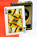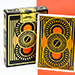 The playing cards feature gold metallic ink on both the faces and on the back. The tuck box is printed with red and gold hot foil on premium quality black paper stock and is exquisitely embossed. A gold seal completes the deck.