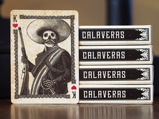 This is the definitive 2nd edition of the deck that started it all! Calaveras Playing Cards features art inspired by Jose Posada and the Mexican Day of the Dead. Every royal is a delightful and unexpected take on that theme rendered in a woodcut and engraved style typical of Posada's work in the late 1800s and early 1900s. He worked at the time of the Mexican Revolution and his Calaveras really caught on-surviving to this day as iconic expressions of the holiday, the social views he held, and the times through which he lived. Calaveras Playing Cards honors the traditions and work of Posada in a premium deck of playing cards with rich printing and classic DoP foil-finished tuck.