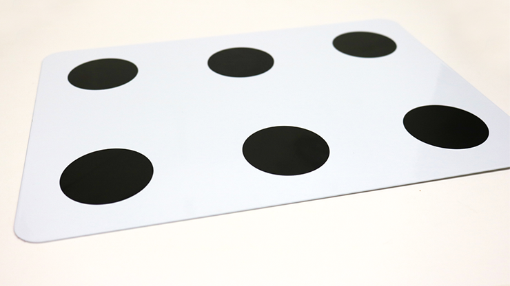 You show your audience a large white card with a single big black dot on one side. You turn the card over and find four dots on the other side...Turn over the card again and there are now THREE dots!! Turn it over again and find SIX dots! You explain that by covering some dots with your fingers and not covering others it changes the way the dots appear... Your audience THINKS they understand the trick until you turn the card over one last time. When you turn the card over one last time, like magic, EIGHT dots appear!!