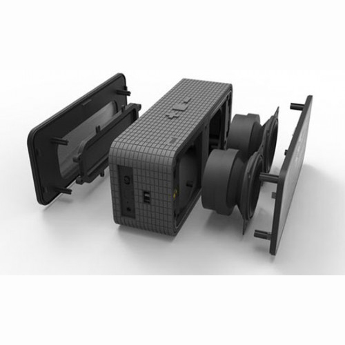 Der Lautsprecher verfügt über einen wieder aufladbaren 1200 mAh Akku (via USB) mit bis zu 8 Stunden Laufzeit. Die gummierte Oberfläche schützt vor Stürzen und Stössen.