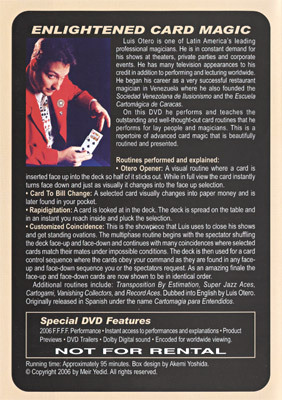 Luis Otero is one of Latin America's leading professional magicians. He is in constant demand for his shows at theaters, private parties and corporate events. He has many television appearances to his credit in addition to performing and lecturing worldwide. He began his career as a very successful restaurant magician in Venezuela where he also founded the Sociedad Venezolana de Ilusionismo and the Escuela Cartomágica de Caracas.