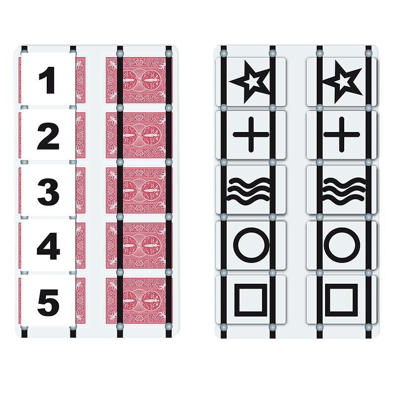Der Mentalist zeigt 5 Karten mit ESP-Symbolen und schiebt sie eine nach der anderen in eine Seite einer transparenten Tafel. Dann zeigt er weitere 5 Karten mit denselben Symbolen und fragt einen Zuschauer, wo er sie auf der gegenüberliegenden Seite der Tafel platzieren möchte. Unglaublicherweise sind die Wahl des Zauberers und die des Zuschauers für die Position der Karten genau gleich, und die Karten passen perfekt zusammen!