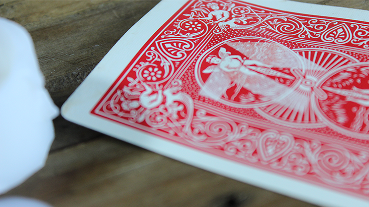A spectator selects a card and places it in the deck. You try to find their card, but it is the wrong one. All is not lost! You heat your "wrong" card with a lighter or candle. Slowly a white image appears on the back of the card, and forms into the spectator's selection!