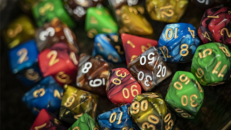 Each set includes 5 dices in same face and match 5 different element colors (Mental-gold, Wood-brown, Water- blue, Fire-red, Earth-yellow).