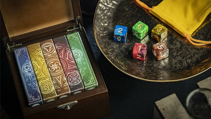 Five Elements Playing Cards Wooden Collection Set with 5 Dice by TCC