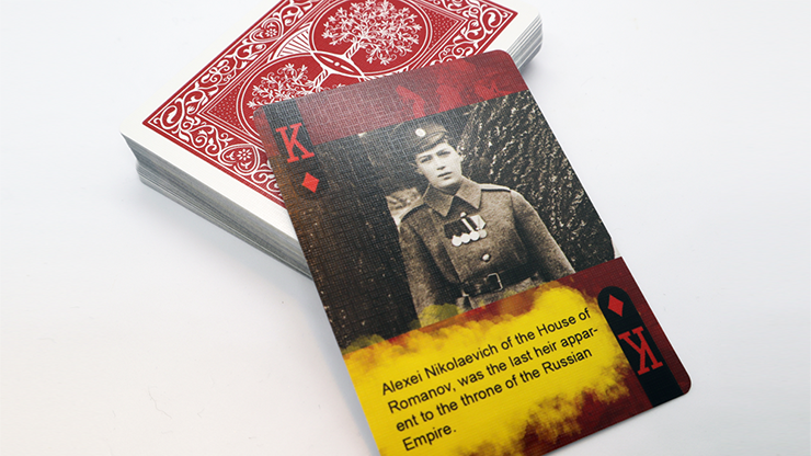 This deck contains 56 cards printed on Casino quality stock. The deck acts as a micro-history book with each card containing information about the History of the Russian Revolution.