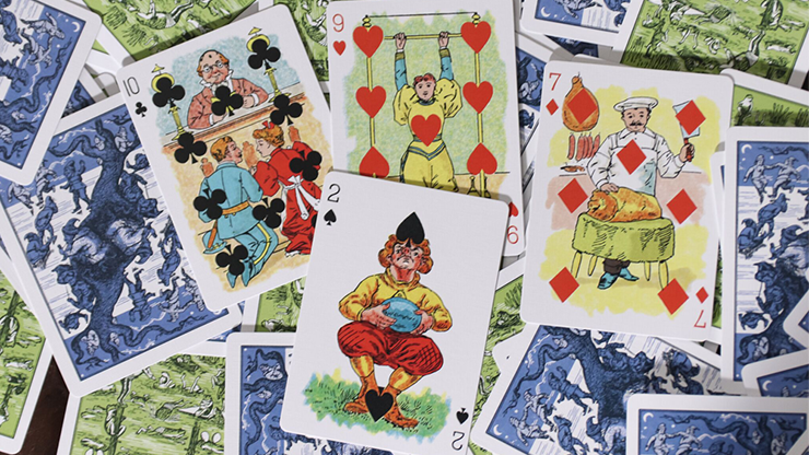 This reproduction deck is based off the "Hustling Joe No 61" semi-transformation playing cards published by the United States Playing Card Company in 1895.
