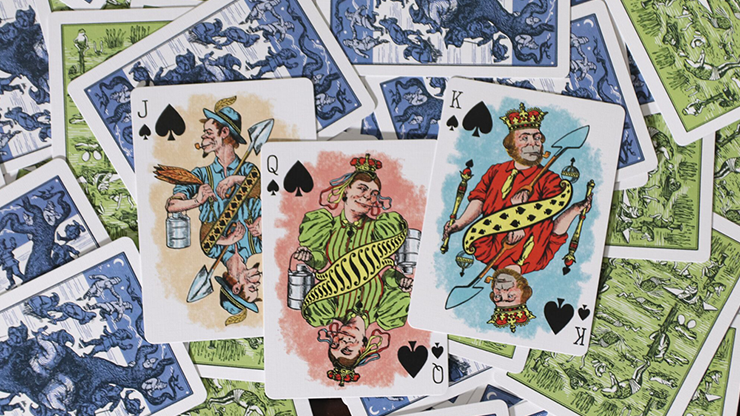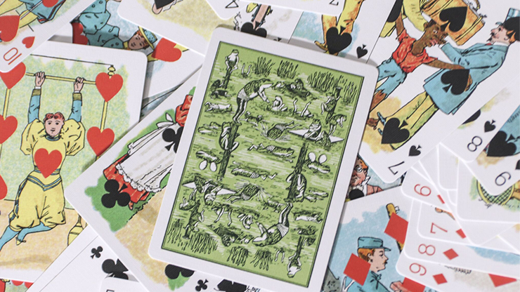 This reproduction deck is based off the "Hustling Joe No 61" semi-transformation playing cards published by the United States Playing Card Company in 1895.