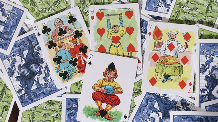 "Joe" is represented by the Ace, the Court cards are of a comical nature and each number card is a vignette.