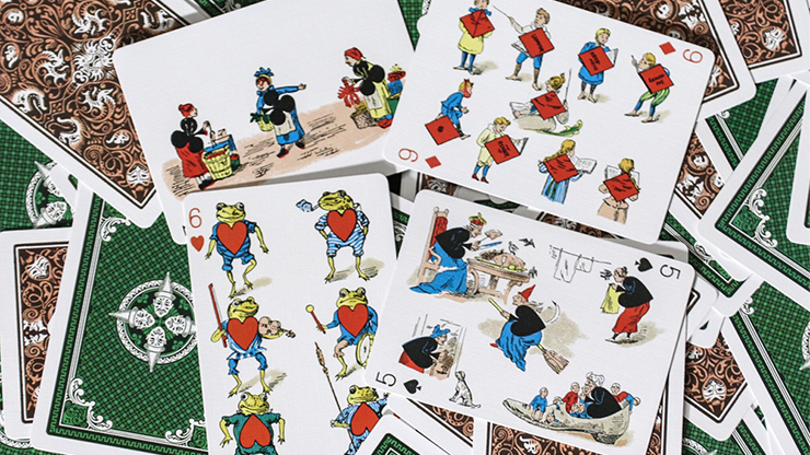 This reproduction deck is based off the "Vanity Fair No 41" transformation playing cards published by the United States Playing Card Company in 1895.