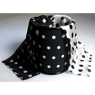 Effect and Presentation: The magician (that's you!) displays an empty black can with white spots, and two silks - one black, and another white.