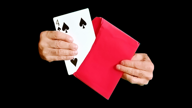 The magician shows a sealed envelope with his prediction inside. The spectator selects a card; let's say, the Queen of Hearts. The magician opens the envelope and there is a jumbo card!... But wait, it's not the Queen.