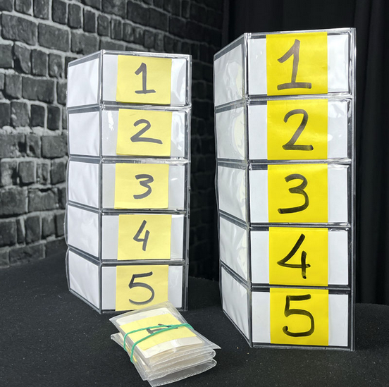 Use business cards, letters, photos, papers,… predict company logos, fruits, sports, flags, names, words, numbers, ESP symbols, characters…anything you can think of. You can customize it by drawing or writing by hand, or printing directly from the computer. There are alternatives of new types of finals, with apparent faults, explanations of different methods using M.V.P., ideas to build one in giant size…and material is included so you can start preparing your sets yourself. M.V.P. can be examined, before and after. You can finish everything “clean”.