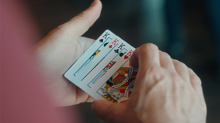- Bonus: Manolo offers the same routine with a twist where 4 Kings with a red back changing into 4 kings with a blue back.
