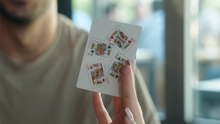 Bonus: a card shown blank from the start suddenly prints itself with the four kings in miniature - a finish that surprises and closes the routine with real impact.