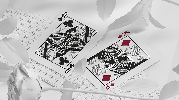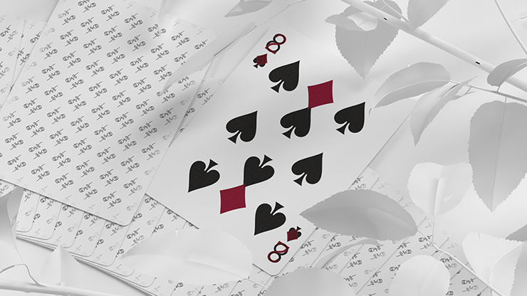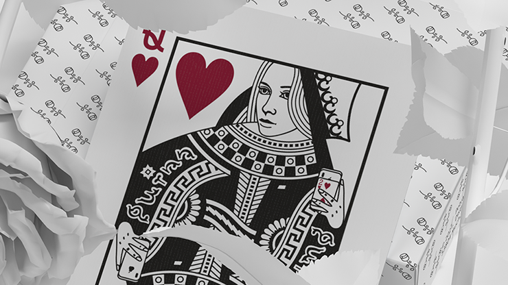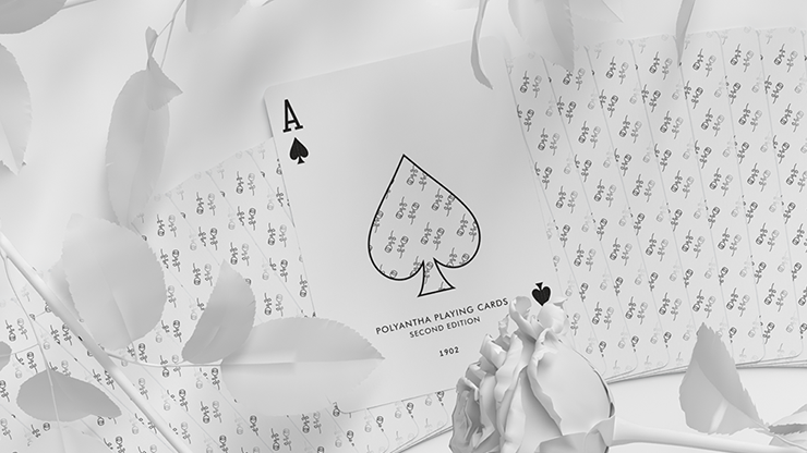 The casino-style back design with faded borders and the greatly reduced color palette in only black and red make the Polyantha Playing cards an instant eye-catcher.