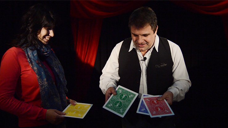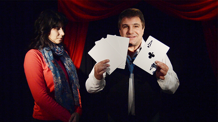 The magician shows three blank cards and one Ace. He makes the monte and the spectator always loses. At the end of the show the magician shows that there were three Aces and only one white card.