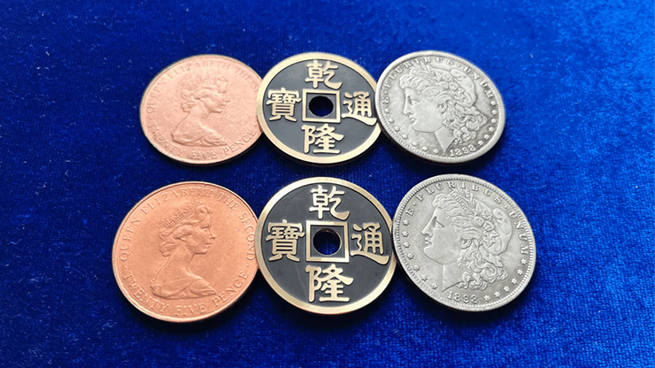 The cleverness of this prop is that it allows you to quickly convert a Morgan coin into an ancient coin, a copper coin, and a Morgan coin, totaling three coins.