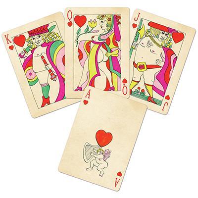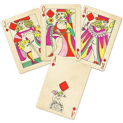 A red card deck with full-figured, burlesque figures.