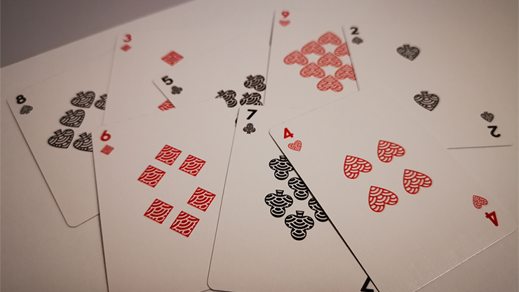Simplistic design incorporating the 2 main aspects of Shiba seigaiha. The back is a traditional style seigaiha patterned crest. Adorned with 3 different shiba faces in a minimalistic clean style. Uniquely styled pips and special face and joker cards, incorporating aspects of japanese culture, explained further below.
