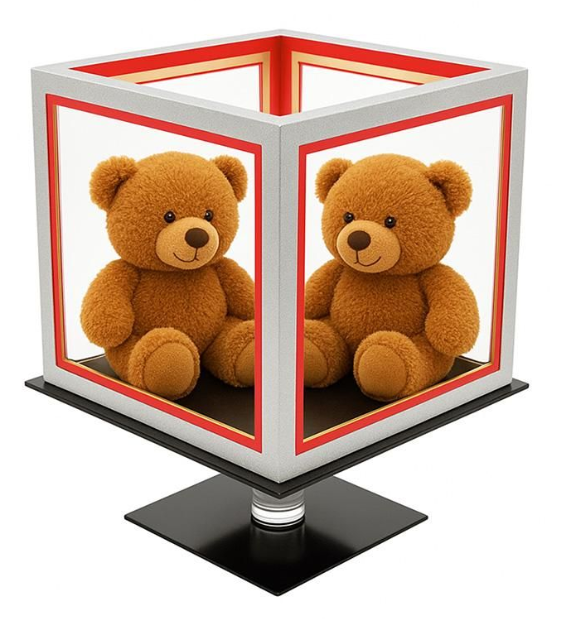 The audience can still clearly see the die through the windowed walls.