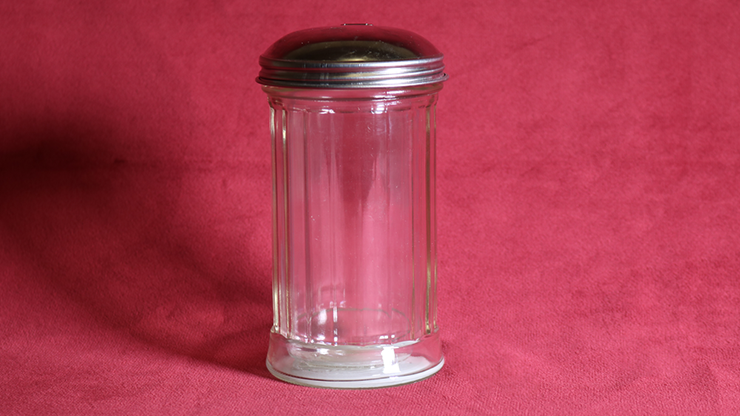 The performer displays the full dispenser, then seemingly pours nearly 2/3 of the sugar into a paper bag. The audience can clearly see that the quantity of sugar in the dispenser has diminished. A few magic words are spoken and when the bag is tilted, out pour real, solid sugar cubes... the granulated sugar has vanished!