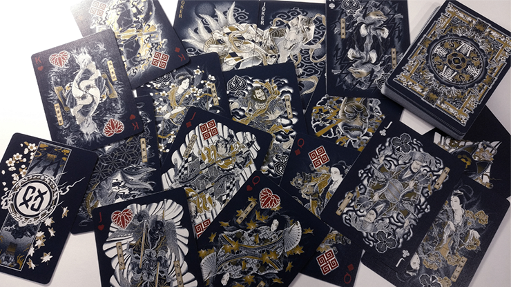 In Kitsune, we continue to translate and transform the traditional Japanese tattoo art form of Wabori into playing card style, retaining as well as enhancing many of the interesting and delightful features we had in Sumi Playing Cards. The focus of Kitsune centers around the fox spirit, a staple in Japanese folklore. We scoured many different sources of folktales, stories and myths about fox spirits and selected a few well-known ones as sources of inspiration for the characters in the Court cards. Kistune continues to serve as an homage to Wabori and faithfully represents the visual nuances and quality that is the hallmark of the Japanese traditional tattoo once again. This creates a visual playing card masterpiece like no other -- a masterpiece that weaves fantastical stories of begone times with modern playing card aesthetics.