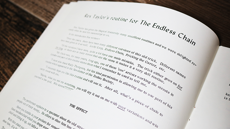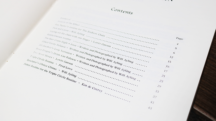 This gambling effect (also known as "Fast And Loose") is extremely deceiving. Although you are in charge 100% of the time, everything appears fair to the spectator. A chain is placed into the shape of a figure eight. You tell the spectator that one of the loops catches your finger and the other does not. You demonstrate that, indeed, one catches and the other does not. However, even though the spectator has a free choice of which loop is the "catching" loop, they will lose every time (or whatever desired outcome you'd prefer). You could also use this to predict how many time they will win/lose.