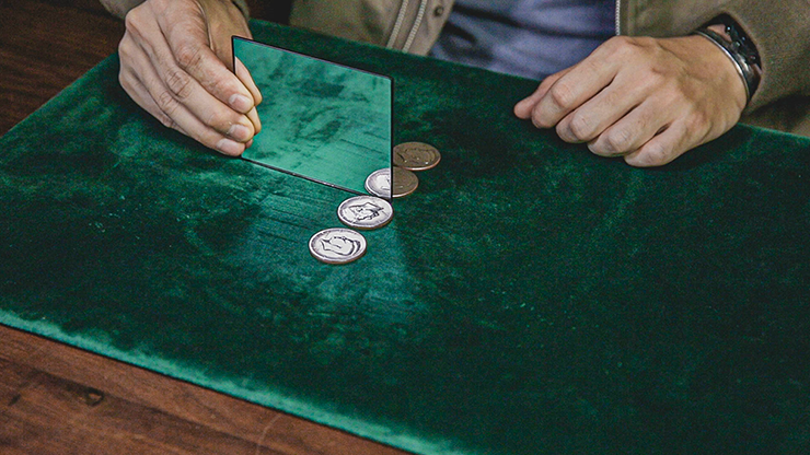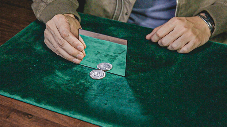 Twilight is an unparalleled close-up discovery that transports an innocent half dollar into the twilight zone of its own mirrored reflection. While in this dimension the coin is visibly condensed, dematerialized, recreated, and reproduced-building to the spectacular "Twilight" finale in which the mirror's reflected images are instantly transformed into four genuine half dollars!