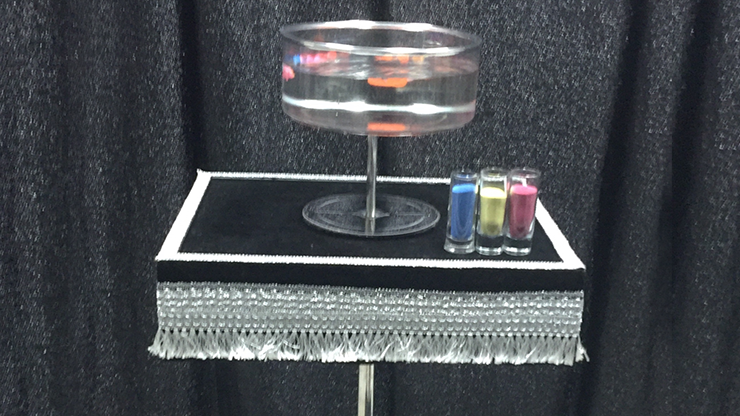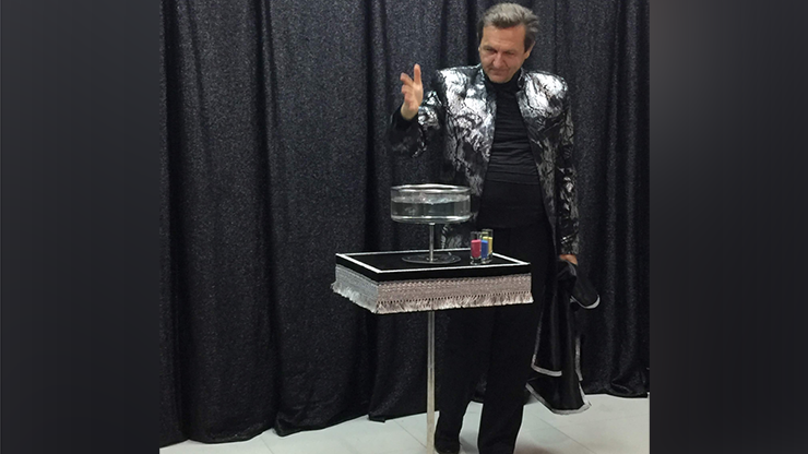 On a completely empty table, a high vase of water and three glasses of colored sand appear, and you are ready to perform magic (Sands of The Desert trick). This happens in one or two seconds.