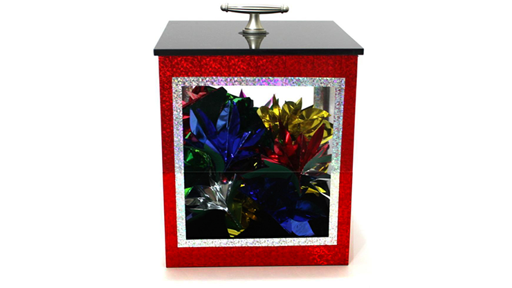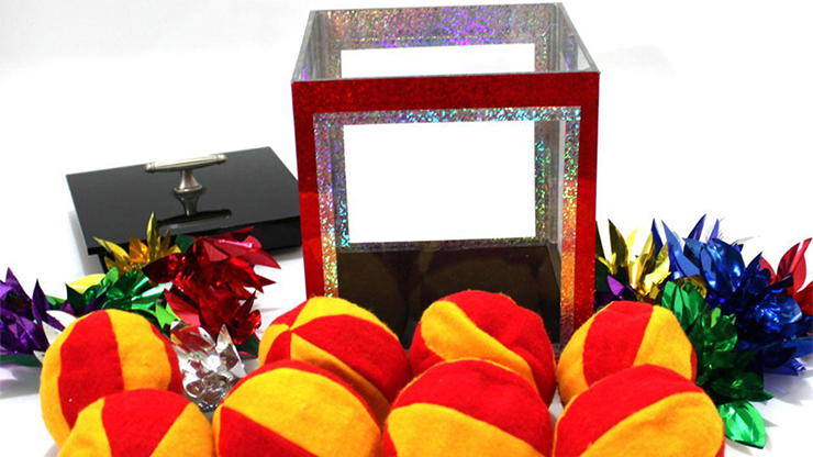 Show an empty transparent box. Just blow on it, and it will magically fill with a bouquet of colorful flowers. Empty it, close the lid, give a magic gesture... and the box will instantly refill with 8 juggler's colored balls!