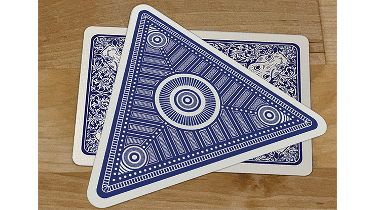 This is a hand-designed deck of uniquely shaped playing cards. Each card was designed to maximize the use of all 3 corners. The size of the deck is 88mm on all 3 sides.