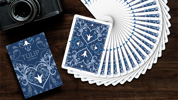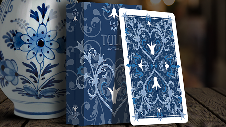 The team from the Dutch Card House Company is back with a brand-new design, Tulip Playing Cards. This deck is a tribute to the beautiful Dutch tulips and the famous delft blue pottery. Three luxury decks have been designed -- a light blue deck, a dark blue deck, and a vivid borderless orange deck. (Orange is the color of the Dutch Royal Family, which hails from the House of Orange).