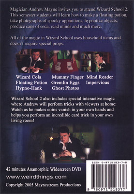 Magician Andrew Mayne invites you to attend Wizard School 2. This semester students will learn how to make a floating potion, take photographs of spooky apparitions, hypnotize objects, produce cans of soda, read minds and much more.