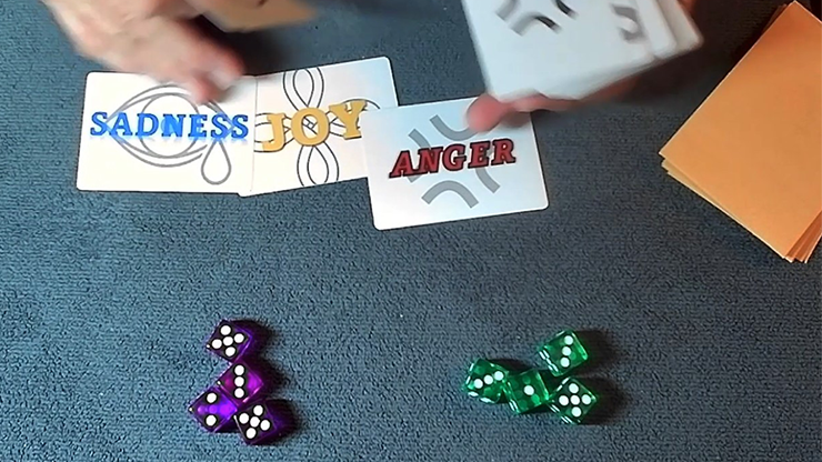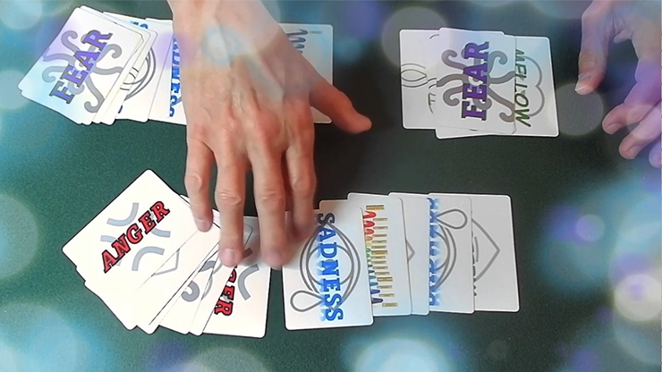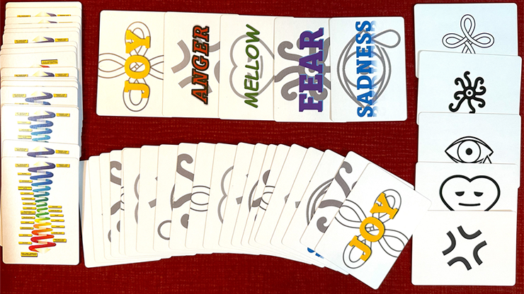 Ich schuf das EMOTIONAL SENSITIVITY PERCEPTION DECK - kurz "ESP-D". Dieses Deck hat, wie ein "traditionelles" ESP-Deck im Zener-Stil, 5 Sätze von 5 Emotionen: FREUDE - ANGST - WUT - GELASSENHEIT - TRAURIGKEIT. Diese 25 Emotions-"Wort"-Karten haben IMAGE-BASIERTE Partner, die weitere 25 Karten ausmachen.