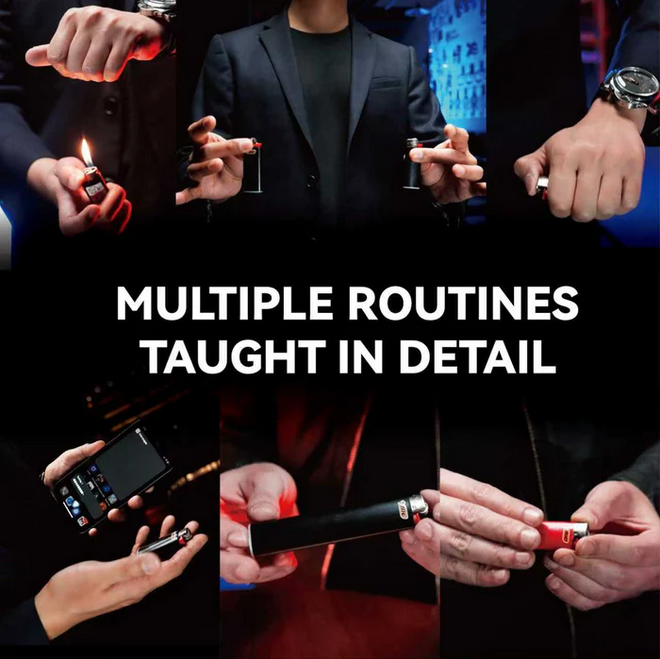 Doch die echte Überraschung? Die Länge wandert. Das Feuerzeug in deiner Hand streckt sich zu einem superlangen Feuerzeug. Wenn der Zuschauer seine Hand öffnet, ist sein Feuerzeug zu einem winzigen Baby‑Feuerzeug geschrumpft!