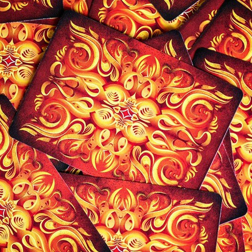 Es gibt keinen Zweifel an diesem Kartenspiel. Vom lodernden Pik Ass auf der Vorderseite der Kartenschachtel zu der Flammenwelt auf der Rückseite.