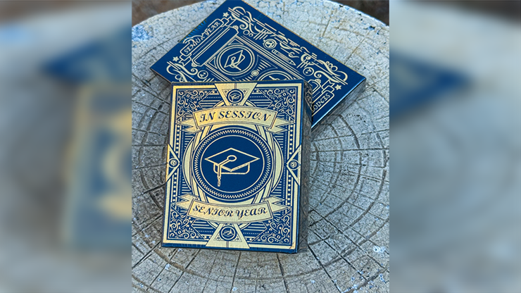 The cards celebrate graduating High School with the courts wearing caps and gowns, while holding diplomas and pencils.
