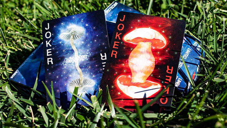 From the team that brought you Friendly Felines and Royal Vortex, we are pleased to present Fungi Mystic Mushrooms Playing Cards! You will find a selection of various fungi represented throughout the deck - colorful, digitally hand-painted designs enchanted on a dark background. This fun, functional, unorthodox deck can be used for all your playing card needs and makes a great deck for your collection.