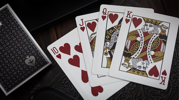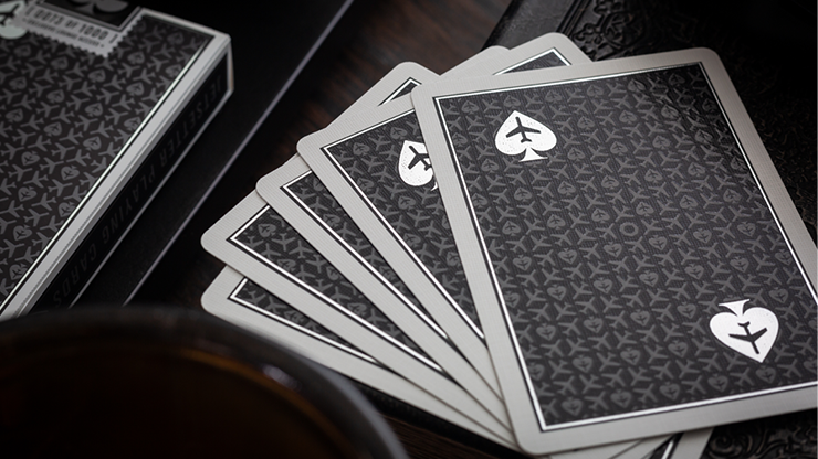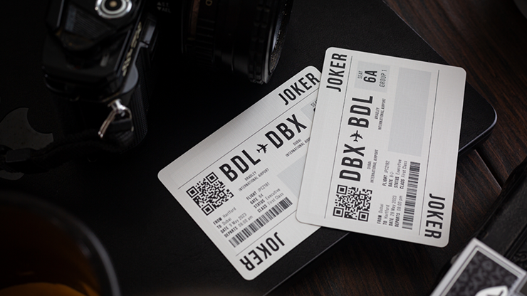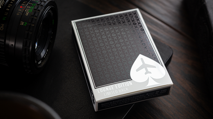 With the Limited Back version of the Lounge Edition in Tarmac Black, the deck provides an upgraded feel over the Standard Back version. The cards showcase re-colored standard faces and have an untraditional offset classic and casino inspired back design that pays homage to the runways utilized by airlines across the globe with the black colorway. On the Limited Back version, the back design is upgraded with both silver foil and clear UV spot varnish. The cards are traditionally cut to provide the ability to weave or faro shuffle facedown. The tuck box exhibits premium features with a durable synthetic stock material, clear UV spot varnish, and more silver foil than the Standard Back version.