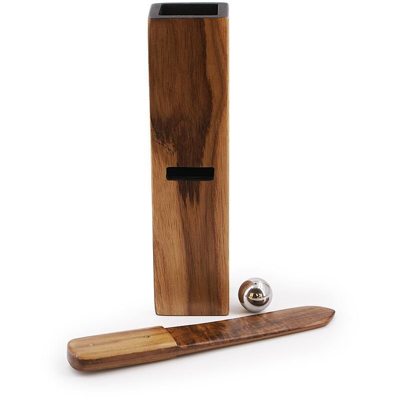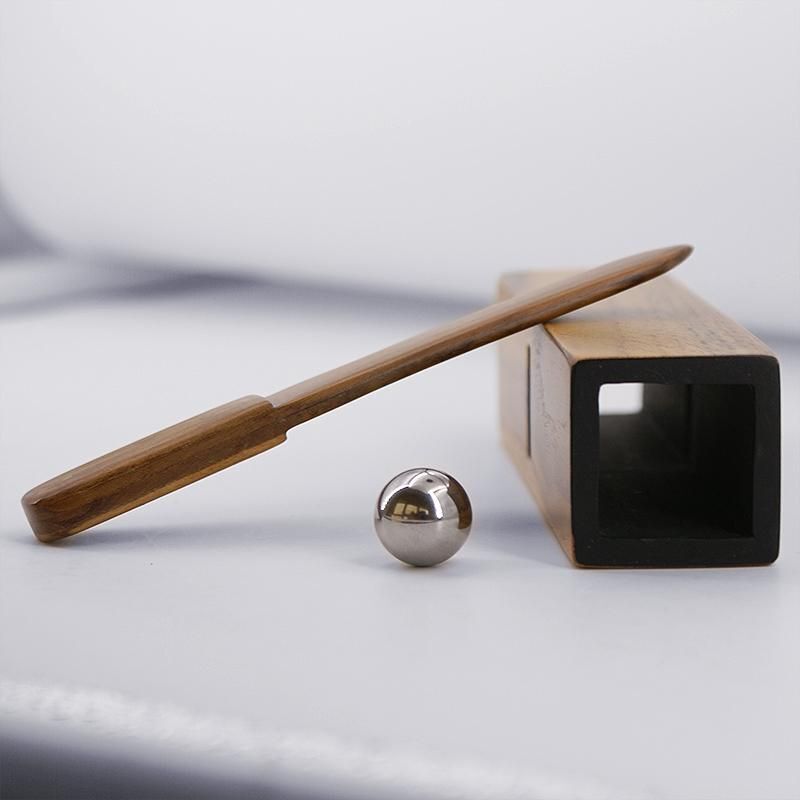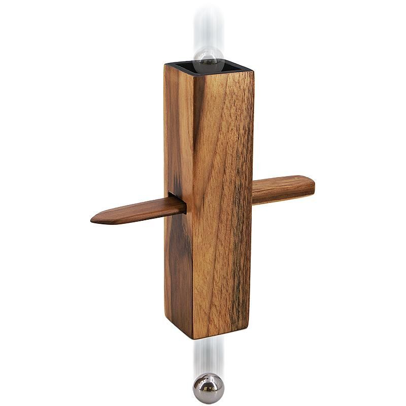 Der Magier präsentiert eine kleine hölzerne Röhre, ein kleines Holzschwert und eine Stahlkugel. Das Röhrchen hat in der Mitte auf der gegenüberliegenden Seite einen Schlitz, durch den das Schwert geführt werden kann und der die Röhre in zwei Kammern teilt. Das Schwert wird durch den Schlitz in der Röhre geführt und die Kugel wird von oben in die Röhre geworfen, wobei deutlich zu sehen ist, dass das Schwert die Kugel daran hindert, die Röhre zu passieren. Mit wenigen magischen Worten bringt der Zauberer die Kugel dazu, das massive Schwert zu durchdringen und nach unten zu fallen.