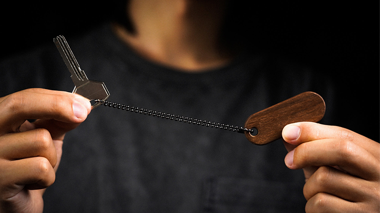 Effekt: Der Zauberkünstler stellt einen Schlüsselanhänger aus Walnussholz vor, an dem ein Schlüssel befestigt ist, und beginnt, eine faszinierende Geschichte zu erzählen. Vier zufällige Zahlen werden vom Publikum genannt, die auch ein wichtiges Datum oder eine Uhrzeit sein können. Der Zauberer dreht den Schlüsselanhänger um und enthüllt die Nummer, die auf der Rückseite des hölzernen Schlüsselanhängers eingraviert ist und die perfekt mit den vier Zufallszahlen übereinstimmt.