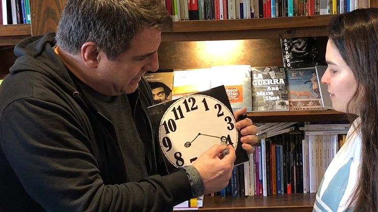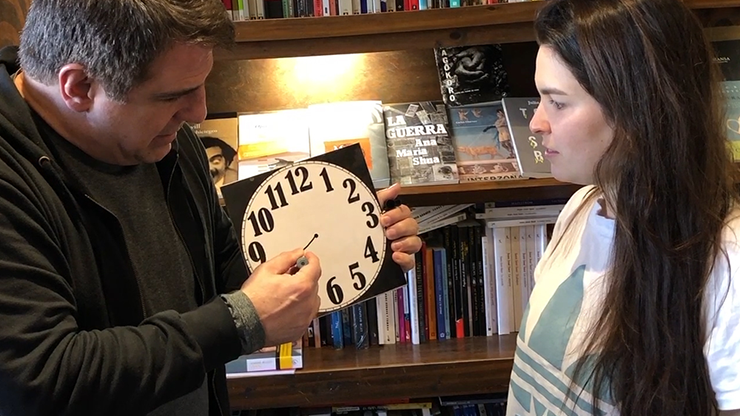 Sie haben ein Bild einer zeigerlosen Uhr und bitten jemanden aus dem Publikum, zufällig eine Stunde und Minuten zu wählen. Sie zeichnen die Zeiger mit einem Marker auf die Uhr und stellen sofort fest, dass Ihre Vorhersage mit ihrer Auswahl übereinstimmt!