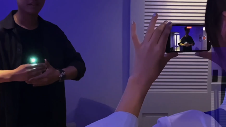 Du bittest darum, das Telefon eines Zuschauers zu leihen. Du schaltest die Taschenlampe ein und hältst es deutlich in deinen Händen. Du gibst ihnen dein Handy, damit sie filmen können, was gleich passieren wird. Du hältst ihr Telefon, sie filmen, was auf deinem Telefon passiert. Blitzschnell ist ihr Handy aus deinen Händen verschwunden. Wo könnte es sein? Es ist jetzt in IHREN Händen und SIE haben die ganze Sache auf IHREM EIGENEN TELEFON gefilmt!